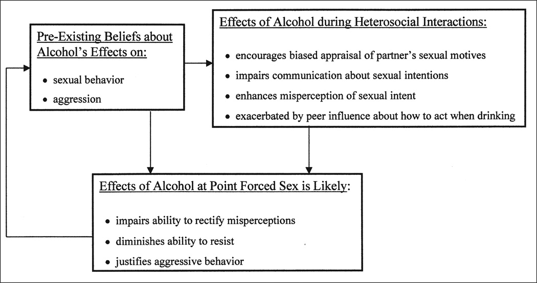 Results: Research suggests that alcohol consumption by the perpetrator and/or the victim increases the likelihood of acquaintance sexual assault occurring through multiple pathways. Alcohol's psychological, cognitive and motor effects contribute to sexual assault.