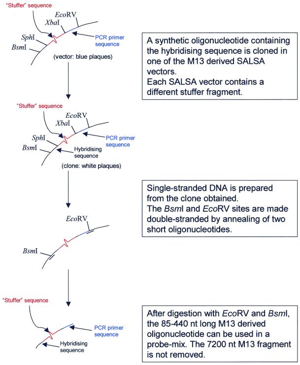 We describe a new method for relative quantification of 40 different DNA sequences in an easy to perform reaction requiring only 20 ng of human DNA. Applications shown of this multiplex ligation-dependent probe amplification (MLPA) technique include the detection of exon deletions and duplications in the human BRCA1, MSH2 and MLH1 genes, detection of trisomies such as Down's syndrome, characterisation of chromosomal aberrations in cell lines and tumour samples and SNP/mutation detection. Relative quantification of mRNAs by MLPA will be described elsewhere. In MLPA, not sample nucleic acids but probes added to the samples are amplified and quantified. Amplification of probes by PCR depends on the presence of probe target sequences in the sample. Each probe consists of two oligonucleotides, one synthetic and one M13 derived, that hybridise to adjacent sites of the target sequence. Such hybridised probe oligonucleotides are ligated, permitting subsequent amplification. All ligated probes have identical end sequences, permitting simultaneous PCR amplification using only one primer pair. Each probe gives rise to an amplification product of unique size between 130 and 480 bp. Probe target sequences are small (50-70 nt). The prerequisite of a ligation reaction provides the opportunity to discriminate single nucleotide differences.