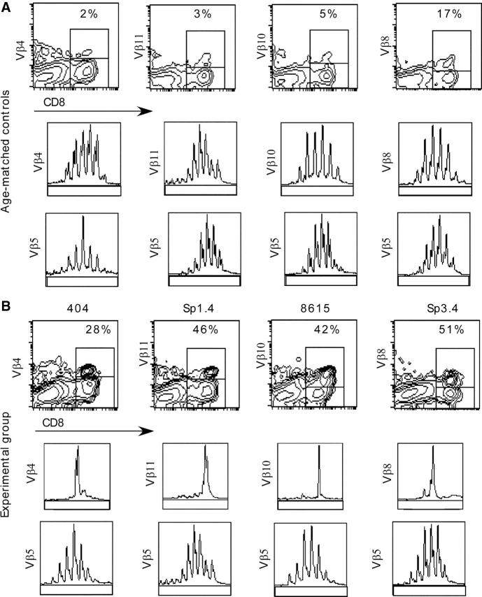 - Hingorani, R., I.H. Choi, P. Akolkar, B. Gulwani-Akolkar, R. Pergolizzi, J. Silver, and P.K. Gregersen. 1993. Clonal predominance of T cell receptors within the CD8+ CD45 RO+ subset in normal human subjects. J. Immunol. 151:5762–5769. - PubMed