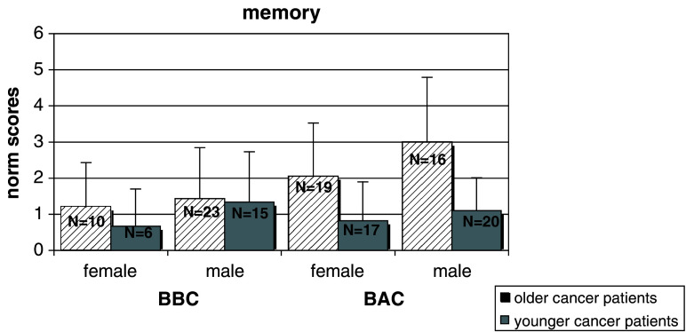 Conclusions: The results suggest that chemotherapy has negative short-term effects on some cognitive functions. But age-dependent effects were only found for memory.