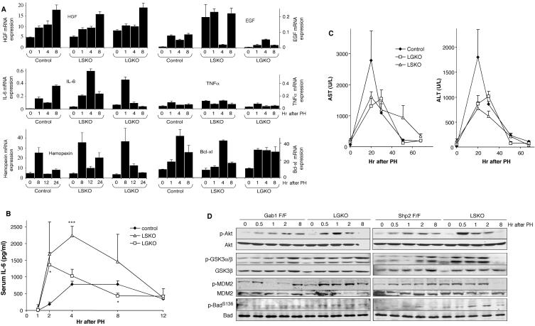 Concerted functions of Gab1 and Shp2 in liver regeneration and hepatoprotection