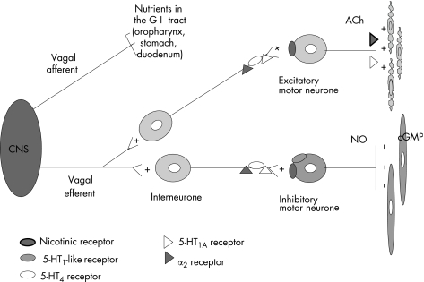 The accommodation reflex is an important mechanism of normal gastric physiology. In functional dyspepsia, impairment of accommodation has been found in 40% of cases, but it has been described in several other upper gastrointestinal disorders, such as diabetic gastropathy and postfundoplication syndrome. This review focuses on the pathways involved in the normal accommodation reflex, the relevance of impaired gastric accommodation as a cause of morbidity and the methods used to assess gastric accommodation in humans. The available medical and therapeutic strategies based on the actual knowledge of the physiology and pharmacology of the accommodation reflex are outlined, with a focus on the role of nitrergic neurones and serotonergic receptors.