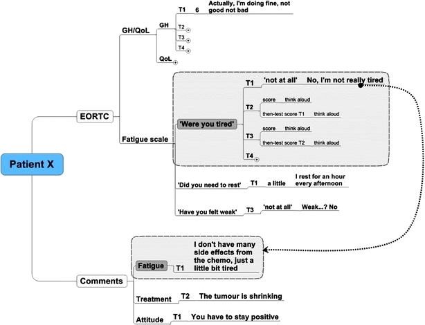Methods: Qualitative investigation of the response behaviour of small-cell lung cancer (SCLC) patients (n = 23) in the measurement of fatigue with The European Organization for Research and Treatment of Cancer Core Quality of Life Questionnaire (EORTC QLQ-C30) question 'were you tired'. Interviews were conducted at four points during 1st line chemotherapy: at the start of chemotherapy, 4 weeks later, at the end of chemotherapy, and 6 weeks later. Patients were asked to 'think aloud' when filling in the questionnaire.