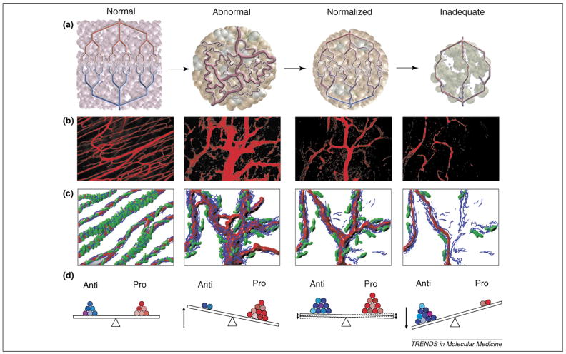 Despite setbacks, the clinical development of antiangiogenic agents has accelerated remarkably over the past 3-4 years. Consequently, there are currently three direct inhibitors of the VEGF pathway approved for use in cancer therapy. Other agents that block the VEGF pathway are in advanced stages of clinical development and have shown promising results. With these exciting developments come crucial questions regarding the use of these new molecular-targeted agents, alone or in combination with standard cytotoxic or targeted agents. Importantly, the mechanisms of action of anti-VEGF therapy remain unknown. Here, we discuss several potential mechanisms of action such as tumor vascular normalization, bone marrow-derived cell recruitment blockade and cytostatic effects of anti-VEGF therapy. We review the current progress, the major stumbling blocks and the future directions for anti-cancer therapy using anti-VEGF agents, emphasizing clarification of the underlying molecular mechanisms of action and biomarker identification and validation.