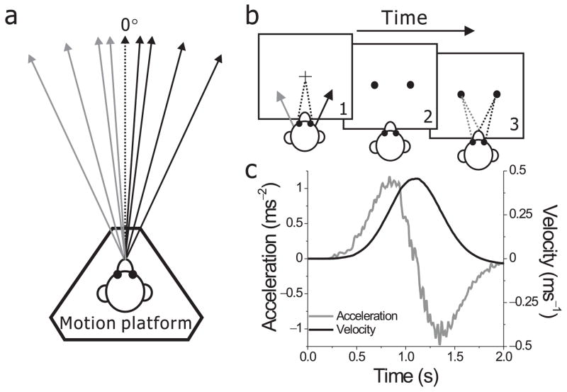 Recent findings of vestibular responses in part of the visual cortex--the dorsal medial superior temporal area (MSTd)--indicate that vestibular signals might contribute to cortical processes that mediate the perception of self-motion. We tested this hypothesis in monkeys trained to perform a fine heading discrimination task solely on the basis of inertial motion cues. The sensitivity of the neuronal responses was typically lower than that of psychophysical performance, and only the most sensitive neurons rivaled behavioral performance. Responses recorded in MSTd were significantly correlated with perceptual decisions, and the correlations were strongest for the most sensitive neurons. These results support a functional link between MSTd and heading perception based on inertial motion cues. These cues seem mainly to be of vestibular origin, as labyrinthectomy produced a marked elevation of psychophysical thresholds and abolished MSTd responses. This study provides evidence that links single-unit activity to spatial perception mediated by vestibular signals, and supports the idea that the role of MSTd in self-motion perception extends beyond optic flow processing.