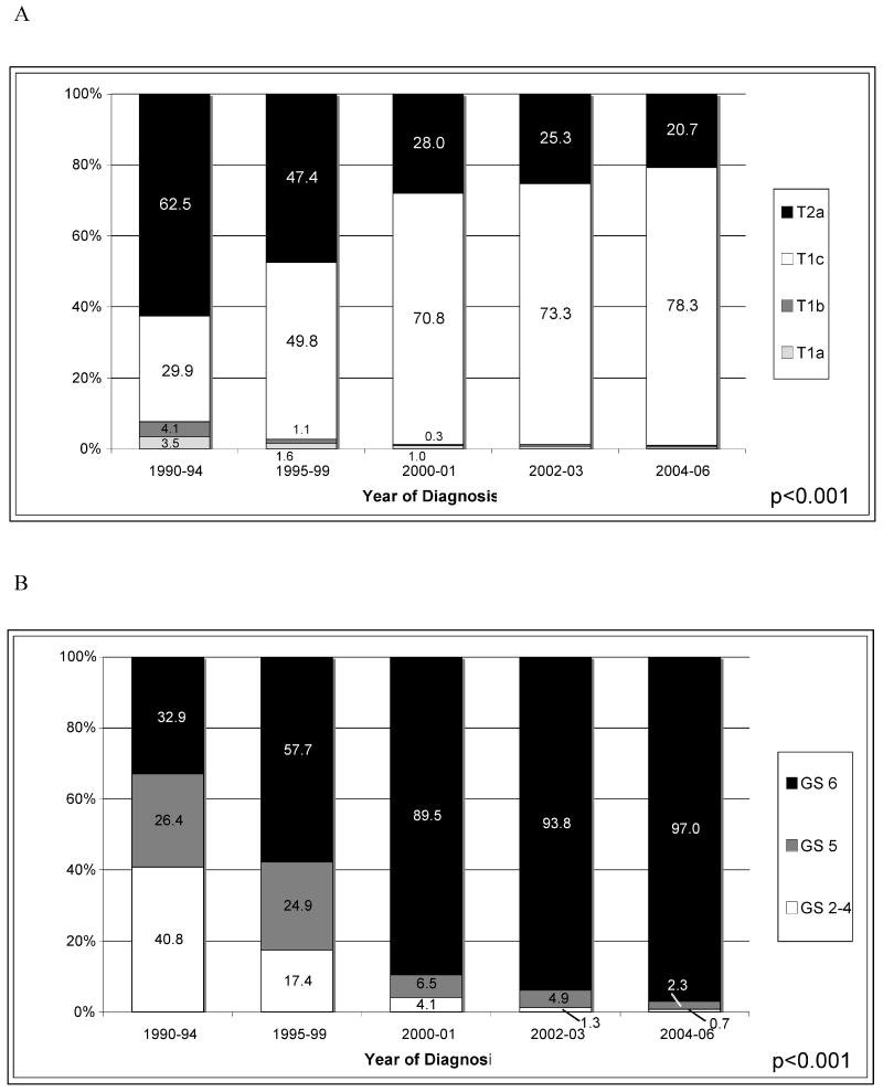 Purpose: We updated national risk trends in prostate cancer with a focus on low risk tumors, reexamined trends in primary treatment for low risk tumors and substratified patients at low risk based on pretreatment clinical data.
