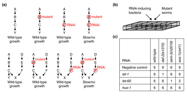 Background: Understanding gene function and genetic relationships is fundamental to our efforts to better understand biological systems. Previous studies systematically describing genetic interactions on a global scale have either focused on core biological processes in protozoans or surveyed catastrophic interactions in metazoans. Here, we describe a reliable high-throughput approach capable of revealing both weak and strong genetic interactions in the nematode Caenorhabditis elegans.