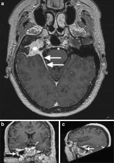 - Gagnon NB, Lavigne F, Mohr G, Guerard MJ, Bouvier G. Extracranial and intracranial meningiomas. J Otolaryngol. 1986;15(6):380–384. - PubMed