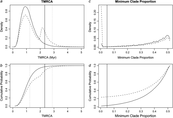 - Basu, A., and P. Majumdar, 2003. A comparison of two popular statistical methods for estimating the time to most recent common ancestor (TMRCA) from a sample of DNA sequences. J. Genet. 82: 7–12. - PubMed