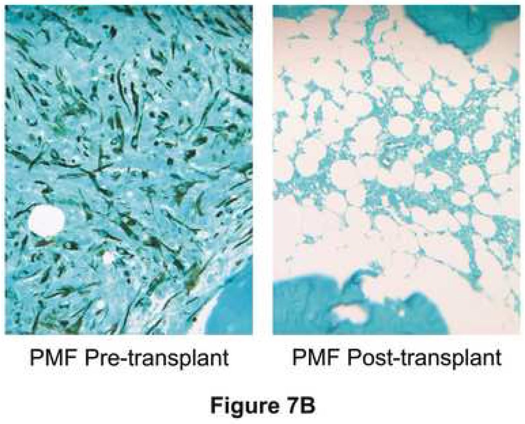 Results: In Gata1 low mice, the plasma SDF-1 protein was five times higher than normal in younger animals. Furthermore, SDF-1 immunostaining of marrow sections progressively increased with age. Similar abnormalities were observed in PMF patients. In fact, plasma SDF-1 levels in PMF patients were significantly higher (by twofold) than normal (p < 0.01) and SDF-1 immunostaining of marrow biopsy specimens demonstrated increased SDF-1 deposition in specific areas. In two of the patients, SDF-1 deposition was normalized by curative therapy with allogenic stem cell transplantation. Similar to what already has been reported for PMF patients, the marrow from Gata1 low mice contained fewer CXCR4 pos CD117 pos cells and these cells expressed low levels of CXCR4 mRNA and protein.