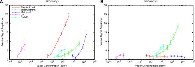 Solid-state, dye-labeled DNA detects volatile compounds in the vapor phase