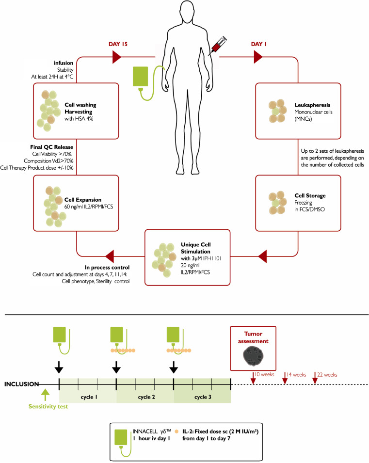 Conclusion: The data collected in ten patients with mRCC indicate that repeated infusions of Innacell gammadelta at different dose levels (up to 8 x 10(9) total cells), either alone or with IL-2 is well tolerated. These results are in favor of the therapeutic value of cell therapy with Innacell gammadelta for the treatment of cancers.