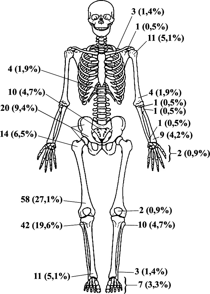 Background: Two hundred and fourteen patients with benign giant cell tumor of bone (GCTB), treated from 1980 to 2007 at the Department of Orthopedics of the University of Muenster (Germany), were analyzed in a retrospective study.