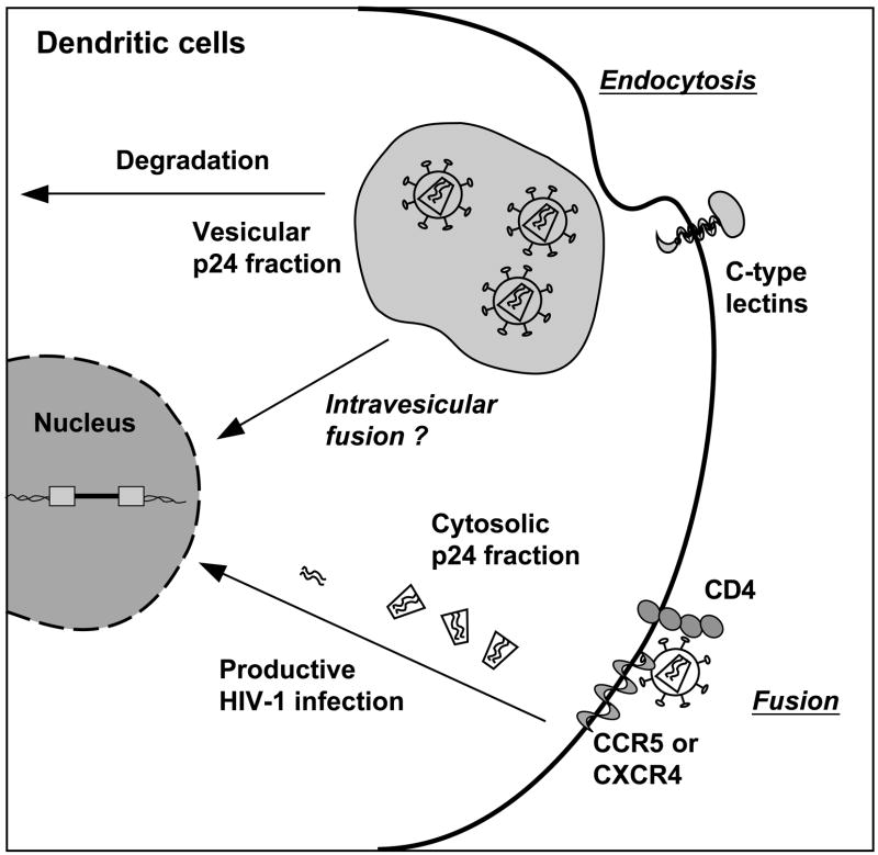Productive infection of human immunodeficiency virus type 1 in dendritic cells requires fusion-mediated viral entry