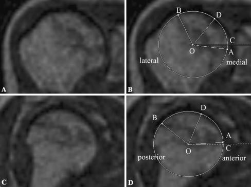 Although MRI is useful for predicting progression of osteonecrosis (ON) of the femoral head or femoral condyle, predicting outcome of atraumatic osteonecrosis of the humeral head using MRI has not been previously examined. We asked whether the prognosis was related to the extent and location of necrotic lesions on MRI. We investigated 46 radiographically noncollapsed humeral heads in 27 patients, 24 steroid-related and three alcohol-related, using MRI and serial radiographs. The minimum followup was 24 months (mean, 84.9 months; range, 24-166 months). The necrotic lesion was typically located at the medial and superior aspect of the humeral head. The necrotic angle, which expressed the extent of the necrotic lesion, was measured on midoblique-coronal plane (range; 0 degrees -134.7 degrees ) and on midoblique-sagittal plane (range; 0 degrees -150.6 degrees ). Of the 46 lesions, 34 were less than 90 degrees and did not collapse, whereas 11 of the other 12 lesions of more than 90 degrees (92%) collapsed within 4 years. Of these 11 collapsed lesions, four of less than 100 degrees did not progress, followed by reparative reaction on plain radiographs, whereas the other seven of more than 100 degrees progressed to osteoarthritis. The extent of a necrotic lesion on MRI is useful to predict collapse of the humeral head.