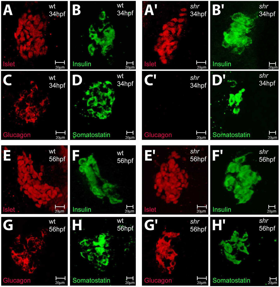 - Biemar F, Argenton F, Schmidtke R, Epperlein S, Peers B, Driever W. Pancreas development in zebrafish: early dispersed appearance of endocrine hormone expressing cells and their convergence to form the definitive islet. Dev Biol. 2001;230:189–203. - PubMed