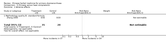 Selection criteria: Any randomised controlled trials involving Chinese herbal medicine versus placebo, no treatment, conventional therapy, heat compression, another type of Chinese herbal medicine, acupuncture or massage. Exclusion criteria were identifiable pelvic pathology and dysmenorrhoea resulting from the use of an intra-uterine contraceptive device.