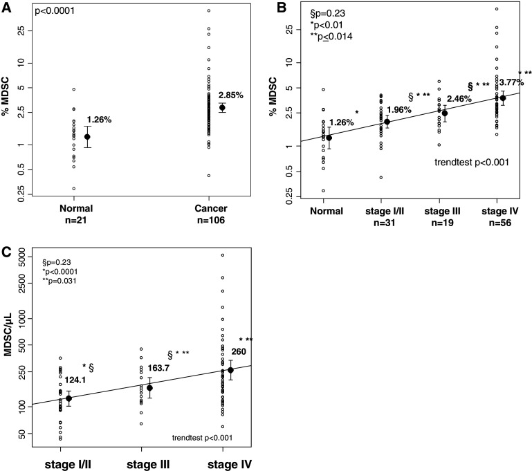 Increased circulating myeloid-derived suppressor cells correlate with clinical cancer stage, metastatic tumor burden, and doxorubicin-cyclophosphamide chemotherapy
