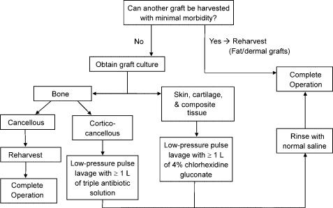 Conclusions: Although autologous grafts do become contaminated in plastic surgery, the overwhelming majority can be safely decontaminated and produce minimal or no clinical sequelae. The algorithms presented are intended to serve as guides for prevention of contamination events or for their management should they occur.