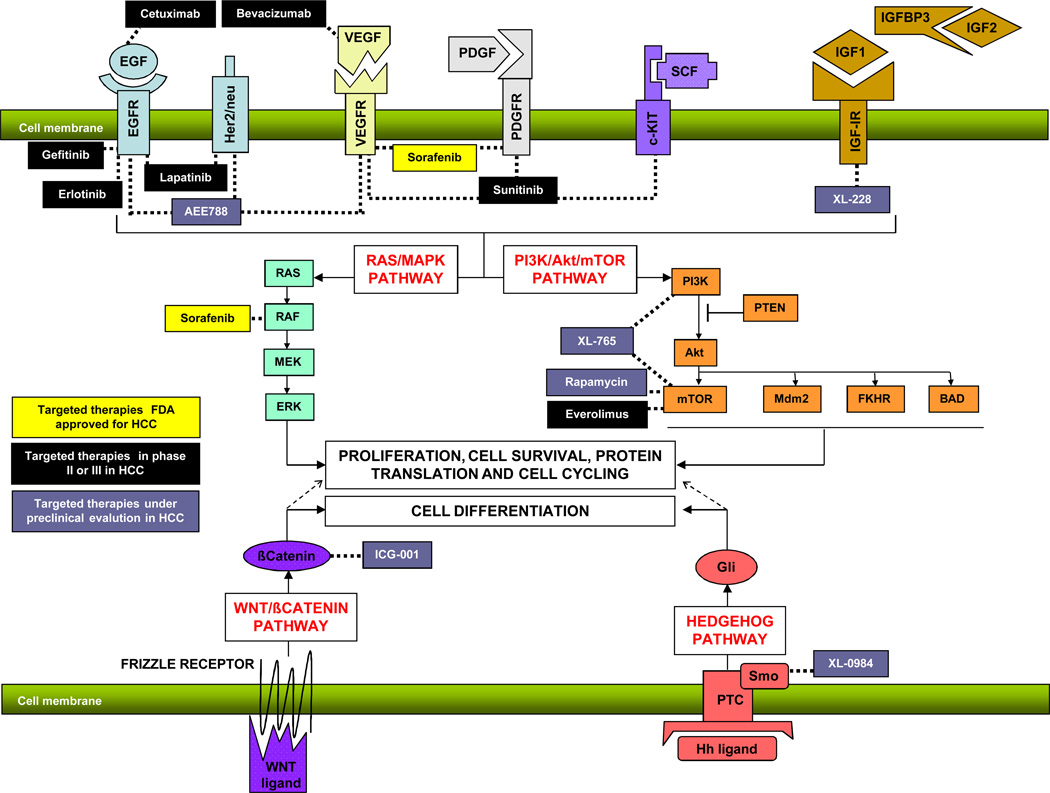 Summary: Selection of patient candidates according to their tumor molecular background is a reality in human malignancies. Thus, a molecular classification is essential to allow the development of new targets, and to customize therapies in patients with hepatocellular carcinoma.