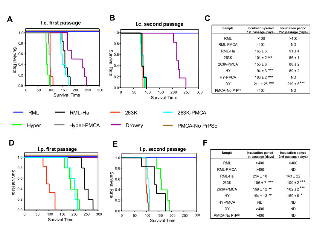 - Atarashi R, Moore RA, Sim VL, Hughson AG, Dorward DW, Onwubiko HA, Priola SA, Caughey B. Ultrasensitive detection of scrapie prion protein using seeded conversion of recombinant prion protein. Nat. Methods. 2007;4:645–650. - PubMed