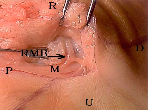 - Kato H, et al. Compression neuropathy of the motor branch of the median nerve caused by palmar ganglion. JHS 1991;16A:751–2. - PubMed