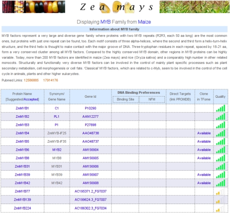 Transcription factors (TFs) are major players in gene regulatory networks and interactions between TFs and their target genes furnish spatiotemporal patterns of gene expression. Establishing the architecture of regulatory networks requires gathering information on TFs, their targets in the genome, and the corresponding binding sites. We have developed GRASSIUS (Grass Regulatory Information Services) as a knowledge-based Web resource that integrates information on TFs and gene promoters across the grasses. In its initial implementation, GRASSIUS consists of two separate, yet linked, databases. GrassTFDB holds information on TFs from maize (Zea mays), sorghum (Sorghum bicolor), sugarcane (Saccharum spp.), and rice (Oryza sativa). TFs are classified into families and phylogenetic relationships begin to uncover orthologous relationships among the participating species. This database also provides a centralized clearinghouse for TF synonyms in the grasses. GrassTFDB is linked to the grass TFome collection, which provides clones in recombination-based vectors corresponding to full-length open reading frames for a growing number of grass TFs. GrassPROMDB contains promoter and cis-regulatory element information for those grass species and genes for which enough data are available. The integration of GrassTFDB and GrassPROMDB will be accomplished through GrassRegNet as a first step in representing the architecture of grass regulatory networks. GRASSIUS can be accessed from www.grassius.org.