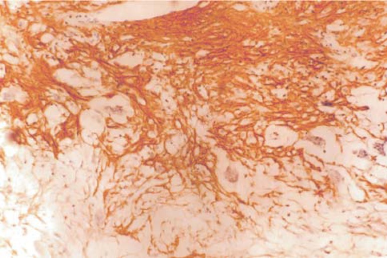 Results: A large number of the mononuclear cells and multinucleated giant cells CD68+ was observed in both of the studied lesions, indicating histiocyte/ macrophage origin. Seven cases of CGCG of the jaws showed intense staining of Fn, with uniform distribution predominantly. In all 7 cases of GCT of long bones the Fn displayed intense expression, with distribution pattern varying from uniform to reticulate/fibrillar. Six cases of CGCG were intensively stained by Tn, presenting focal expression in half of specimens, and reticulate/ fibrillar pattern of expression in 4 cases. All cases of GCT of the long bones presented intense expression of Tn, uniform distribution, and reticulate/fibrillar pattern of expression in four cases.