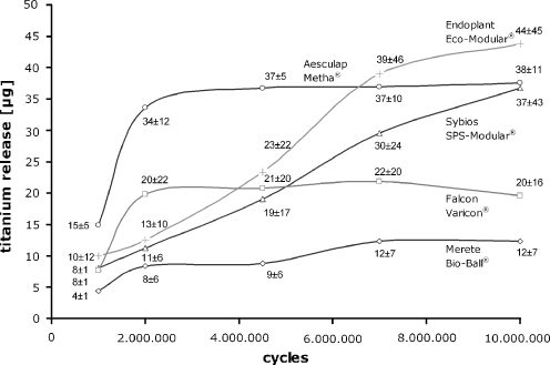 Modular neck implants are an attractive treatment tool in total hip replacement. Concerns remain about the mechanical stability and metal ion release caused by the modular connection. Five different implant designs were investigated in an experimental set-up. In vivo conditions were simulated and the long-term titanium release was measured. Finally, the modular connections were inspected for corrosion processes and signs of fretting. No mechanical failure or excessive corrosion could be identified for the implants tested. The titanium releases measured were extremely low compared to in vivo and in vitro studies and were not in a critical range.