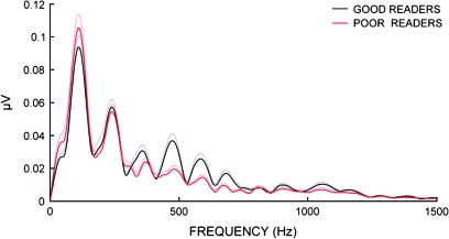 Although it is largely agreed that phonological processing deficits are a major cause of poor reading, the neural origins of phonological processing are not well understood. We now show, for the first time, that phonological decoding, measured with a test of single-nonword reading, is significantly correlated with the timing of subcortical auditory processing and also, to a lesser extent, with the robustness of subcortical representation of the harmonic content of speech, but not with pitch encoding. The relationships we observe between reading and subcortical processing fall along a continuum, with poor readers at one end and good readers at the other. These data suggest that reading skill may depend on the integrity of subcortical auditory mechanisms and are consistent with the idea that subcortical representation of the acoustic features of speech may play a role in normal reading as well as in the development of reading disorders. These data establish a significant link between subcortical auditory function and reading, thereby contributing to the understanding of the biological bases of reading. At a more general level, these findings are among the first to establish a direct relationship between subcortical sensory function and a specific cognitive skill (reading). We argue that this relationship between cortical and subcortical function could be shaped during development by the corticofugal pathway and that this cortical-subcortical link could contribute to the phonological processing deficits experienced by poor readers.