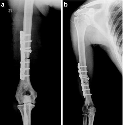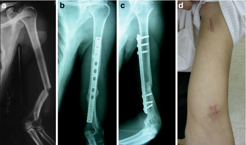 - Schemitsch EH, Bhandari M (2003) Fractures of the humeral shaft. In: Browner BD, Jupiter JB, Levine AM, Trafton PG (ed) Skeletal trauma: basic science, management, and reconstruction, 3rd edn. WB Saunders Company, pp 1487–1488