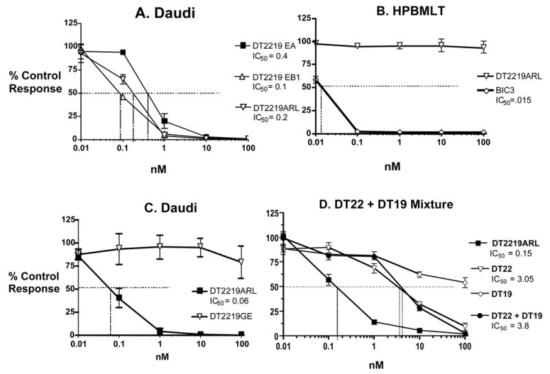 - Stone MJ, Sausville EA, Fay JW, et al. A phase I study of bolus versus continuous infusion of the anti-CD19 immunotoxin, IgG-HD37-dgA, in patients with B-cell lymphoma. Blood. 1996;88:1188–97. - PubMed