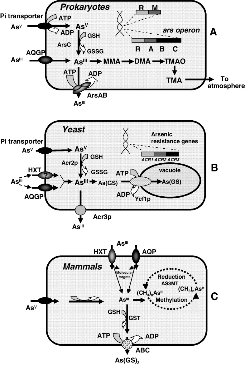 Arsenic is a metalloid which is toxic to living organisms. Natural occurrence of arsenic and human activities have led to widespread contamination in many areas of the world, exposing a large section of the human population to potential arsenic poisoning. Arsenic intake can occur through consumption of contaminated crops and it is therefore important to understand the mechanisms of transport, metabolism and tolerance that plants display in response to arsenic. Plants are mainly exposed to the inorganic forms of arsenic, arsenate and arsenite. Recently, significant progress has been made in the identification and characterisation of proteins responsible for movement of arsenite into and within plants. Aquaporins of the NIP (nodulin26-like intrinsic protein) subfamily were shown to transport arsenite in planta and in heterologous systems. In this review, we will evaluate the implications of these new findings and assess how this may help in developing safer and more tolerant crops.