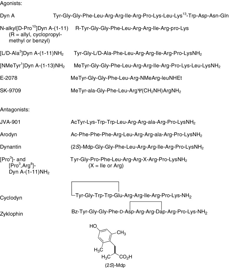 While narcotic analgesics such as morphine, which act preferentially through mu opioid receptors, remain the gold standard in the treatment of severe pain, their use is limited by detrimental liabilities such as respiratory depression and drug dependence. Thus, there has been considerable interest in developing ligands for kappa opioid receptors (KOR) as potential analgesics and for the treatment of a variety of other disorders. These include effects mediated both by central receptors, such as antidepressant activity and a reduction in cocaine-seeking behavior, and activity resulting from the activation of peripheral receptors, such as analgesic and anti-inflammatory effects. While the vast majority of opioid receptor ligands that have progressed in preclinical development have been small molecules, significant advances have been made in recent years in identifying opioid peptide analogs that exhibit promising in vivo activity. This review will focus on possible therapeutic applications of ligands for KOR and specifically on the potential development of peptide ligands for these receptors.