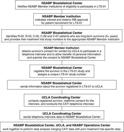 Results: Sixty-five NSABP treatment sites were invited to enroll patients in the study. Sixty participated with the potential to recruit 2,408 patients. We received registration forms on only 976 patients (41%) of whom 744 (76%) expressed interest in participating and 708 completed interviews (95% of those expressing interest; 29% of total potential sample). There were multiple barriers to recruitment (difficulty locating patients, lack of institutional commitment, lack of patient interest).