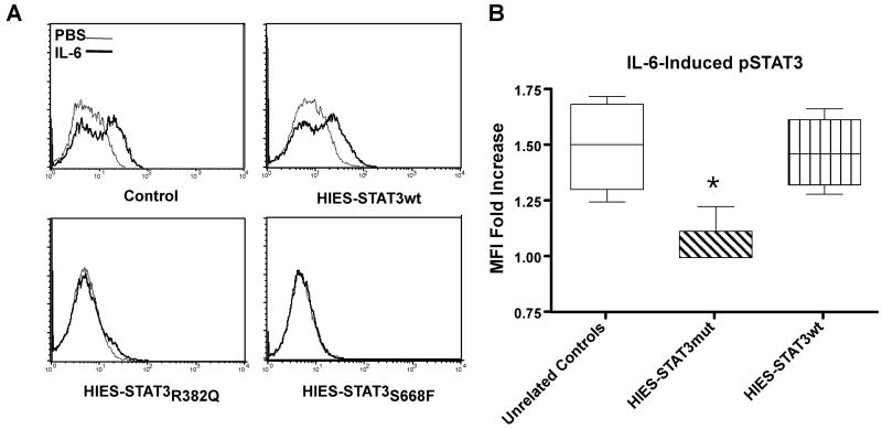 Methods: A cohort of 25 Turkish children diagnosed with HIES were examined for STAT3 mutations by DNA sequencing. Activation of STAT3 by IL-6 and IL-21 and STAT1 by IFN-alpha was assessed by intracellular staining with anti-phospho (p)STAT3 and -pSTAT1 antibodies. T(H)17 and T(H)1 cell differentiation was assessed by measuring the production of IL-17 and IFN-gamma, respectively.