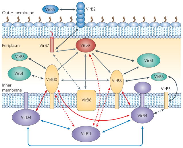 Type IV secretion systems (T4SSs) are versatile secretion systems that are found in both Gram-negative and Gram-positive bacteria and secrete a wide range of substrates, from single proteins to protein-protein and protein-DNA complexes. They usually consist of 12 components that are organized into ATP-powered, double-membrane-spanning complexes. The structures of single soluble components or domains have been solved, but an understanding of how these structures come together has only recently begun to emerge. This Review focuses on the structural advances that have been made over the past 10 years and how the corresponding structural insights have helped to elucidate many of the details of the mechanism of type IV secretion.