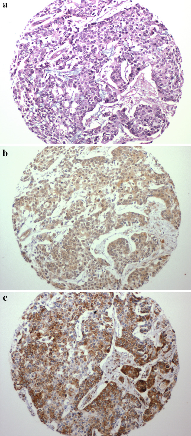 Experimental design: Tissue from 167 cystectomies for primary BC was used to create a tissue microarray. 128 tumors were urothelial carcinoma (UC). Immunohistochemistry was performed using 14 monoclonal antibodies to APM components (beta2-microglobulin, calnexin, calreticulin, delta, Z, MB1, LMP2, LMP7, LMP10, HLA class I heavy chain, tapasin, TAP1, TAP2 and ERp57) and MHC class I-related antigen (MICA). Sections of normal urothelium from six subjects were used as controls.