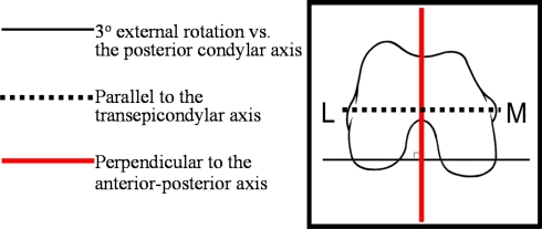 - Berger RA, Rubash HE, Seel MJ, Thompson WH, Crossett LS. Determining the rotational alignment of the femoral component in total knee arthroplasty using the epicondylar axis. Clin Orthop Relat Res. 1993;286:40–47. - PubMed