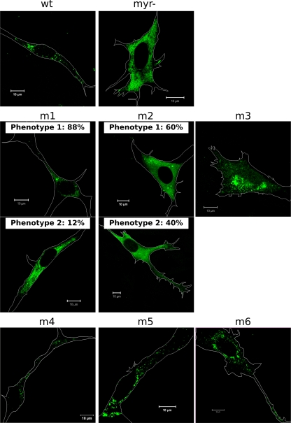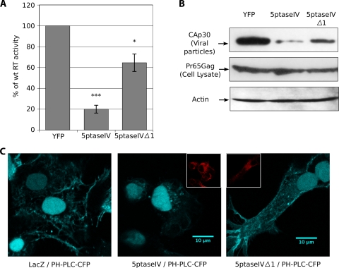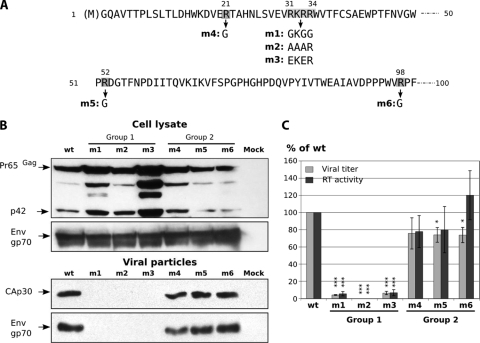Membrane targeting of the human immunodeficiency virus Gag proteins is dependent on phosphatidylinositol-(4,5)-bisphosphate [PI(4,5)P(2)] located in the plasma membrane. In order to determine if evolutionarily distant retroviral Gag proteins are targeted by a similar mechanism, we generated mutants of the matrix (MA) domain of murine leukemia virus (MuLV) Gag, examined their binding to membrane models in vitro, and analyzed their phenotypes in cell culture. In vitro, we showed that MA bound all the phosphatidylinositol phosphates with significant affinity but displayed a strong specificity for PI(4,5)P(2) only if enhanced by phosphatidylserine. Mutations in the polybasic region in MA dramatically reduced this affinity. In cells, virus production was strongly impaired by PI(4,5)P(2) depletion under conditions of 5ptaseIV overexpression, and mutations in the MA polybasic region altered Gag localization, membrane binding, and virion production. Our results suggest that the N-terminal polybasic cluster of MA is essential for Gag targeting to the plasma membrane. The binding of the MA domain to PI(4,5)P(2) appears to be a conserved feature among retroviruses despite the fact that the MuLV-MA domain is structurally different from that of human immunodeficiency virus types 1 and 2 and lacks a readily identifiable PI(4,5)P(2) binding cleft.