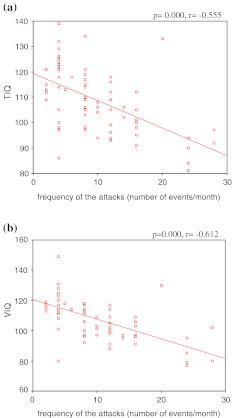 We investigated whether children affected by tension-type headache and migraine without aura, compared with a healthy control group that was matched by age, culturally and socioeconomically display a diverse intellectual functioning and have a separate "cognitive profile". A cross-sectional study was conducted from January 2006 to November 2008 at "Sapienza University" in Rome. A total of 134 children were diagnosed as being affected by either migraine without aura (93) or tension-type headache (41). On the basis of our exclusion/inclusion criteria, we enrolled 82 of these 134 children, 63 of whom were affected by migraine without aura and 19 by tension-type headache. On entry, cognitive functions were assessed in both the affected subjects and the control group by the Wechsler Intelligence Scale for Children-revised. Significant differences were found between the headache and control groups in the mean total intelligence quotient and verbal intelligence quotient scores (p < 0.001). Significant negative correlations were found between the total intelligence quotient, verbal intelligence quotient, performance intelligence quotient and the frequency of attacks (r = -0.55 and p < 0.001, r = -0.61 and p < 0.001, r = -0.29 and p < 0.01, respectively), as well as between the total intelligence quotient score and the age at headache onset (r = 0.234, p < 0.05). Our results suggest that the cognitive profile of children affected by headache should be assessed at the first child neurology outpatient observation. From a therapeutic point of view, although within a normal range, the abilities most likely to be less brilliant in such children are verbal skills.