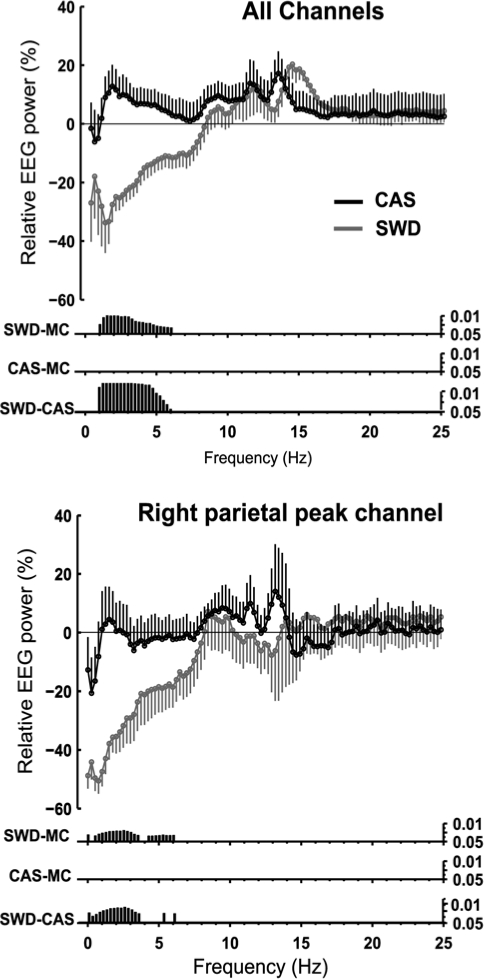 Measurements and results: Sleep time and efficiency were not affected, whereas SWA and the number of slow waves decreased in SWD relative to CAS. Relative to the night before, visuomotor performance significantly improved in the CAS condition (+5.93% +/- 0.88%) but not in the SWD condition (-0.77% +/- 1.16%), and the direct CAS vs SWD comparison showed a significant difference (P = 0.0007, n = 12, paired t test). Changes in visuomotor performance after SWD were correlated with SWA changes over right parietal cortex but not with the number of arousals identified using clinically established criteria, nor with any sign of "EEG lightening" identified using a novel automatic method based on event-related spectral perturbation analysis.