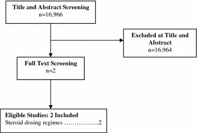 Recommendations: Steroid therapy versus no steroid therapy Asymptomatic brain metastases patients without mass effect Insufficient evidence exists to make a treatment recommendation for this clinical scenario. Brain metastases patients with mild symptoms related to mass effect Level 3 Corticosteroids are recommended to provide temporary symptomatic relief of symptoms related to increased intracranial pressure and edema secondary to brain metastases. It is recommended for patients who are symptomatic from metastatic disease to the brain that a starting dose of 4-8 mg/day of dexamethasone be considered. Brain metastases patients with moderate to severe symptoms related to mass effect Level 3 Corticosteroids are recommended to provide temporary symptomatic relief of symptoms related to increased intracranial pressure and edema secondary to brain metastases. If patients exhibit severe symptoms consistent with increased intracranial pressure, it is recommended that higher doses such as 16 mg/day or more be considered. Choice of Steroid Level 3 If corticosteroids are given, dexamethasone is the best drug choice given the available evidence. Duration of Corticosteroid Administration Level 3 Corticosteroids, if given, should be tapered slowly over a 2 week time period, or longer in symptomatic patients, based upon an individualized treatment regimen and a full understanding of the long-term sequelae of corticosteroid therapy. Given the very limited number of studies (two) which met the eligibility criteria for the systematic review, these are the only recommendations that can be offered based on this methodology. Please see "Discussion" and "Summary" section for additional details.