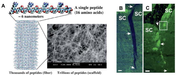 Peptide nanostructures containing bioactive signals offer exciting novel therapies of broad potential impact in regenerative medicine. These nanostructures can be designed through self-assembly strategies and supramolecular chemistry, and have the potential to combine bioactivity for multiple targets with biocompatibility. It is also possible to multiplex their functions by using them to deliver proteins, nucleic acids, drugs and cells. In this review, we illustrate progress made in this new field by our group and others using peptide-based nanotechnology. Specifically, we highlight the use of self-assembling peptide amphiphiles towards applications in the regeneration of the central nervous system, vasculature and hard tissue along with the transplant of islets and the controlled release of nitric oxide to prevent neointimal hyperplasia. Also, we discuss other self-assembling oligopeptide technology and the progress made with these materials towards the development of potential therapies.