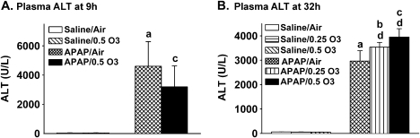 Acute exposure to ozone exacerbates acetaminophen-induced liver injury in mice