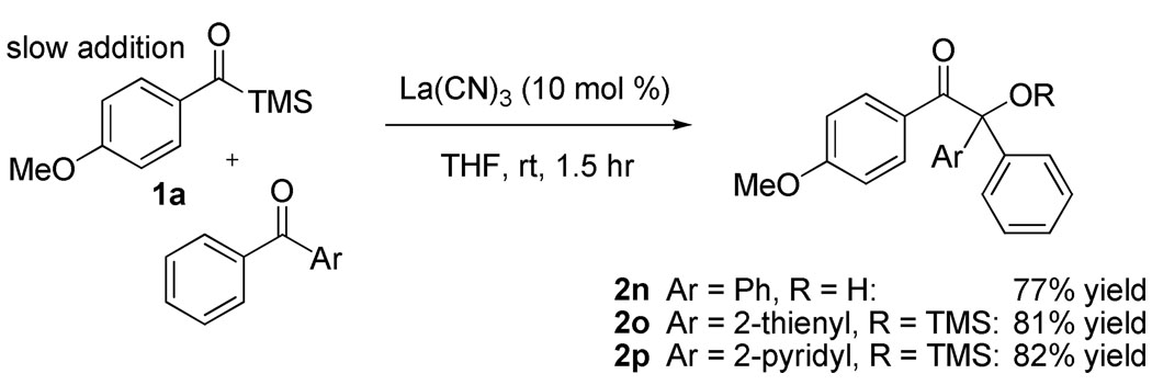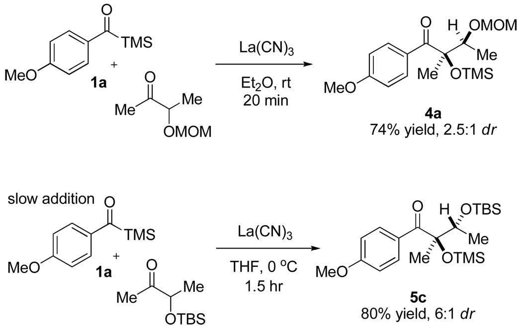 Lanthanum tricyanide-catalyzed acyl silane-ketone benzoin additions and kinetic resolution of resultant alpha-silyloxyketones