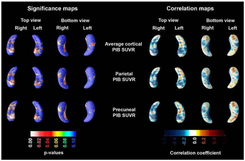3D PIB and CSF biomarker associations with hippocampal atrophy in ADNI subjects