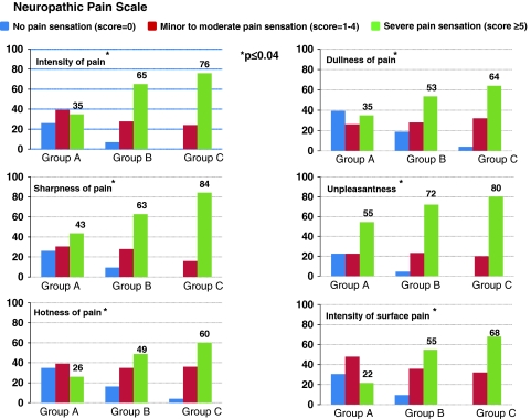Small fibre neuropathy (SFN) has been demonstrated in sarcoidosis. However, a systematic analysis of neuropathic pain and autonomic symptoms, key features of SFN, has not been performed. Clinimetric evaluation of pain and autonomic symptoms using the neuropathic pain scale (NPS) and the modified Composite Autonomic Symptoms Scale (mCOMPASS) was used in sarcoidosis patients for this study. A total of 91 sarcoidosis patients (n = 23 without SFN symptoms, n = 43 with SFN symptoms but normal intraepidermal nerve fibre density (IENFD), n = 25 with SFN symptoms and reduced IENFD) were examined. NPS and mCOMPASS were assessed twice (reliability studies). Severity of pain was compared between the subgroups. Correlation between NPS and a visual analogue pain scale (VAS) was assessed (validity studies). Healthy controls (n = 105) completed the mCOMPASS for comparison with patients' scores. Patients with sarcoidosis, SFN complaints, and reduced IENFD demonstrated more severe pain scores on the NPS. The mCOMPASS differentiated between subjects with and without SFN symptoms. A significant correlation was obtained between the NPS and VAS, indicating good construct validity. Good reliability values were obtained for all scales. The use of the NPS to evaluate SFN symptoms is suggested, as it shows differences between patients with SFN symptoms with normal or reduced IENFD values. The mCOMPASS might be used to select patients for further testing.