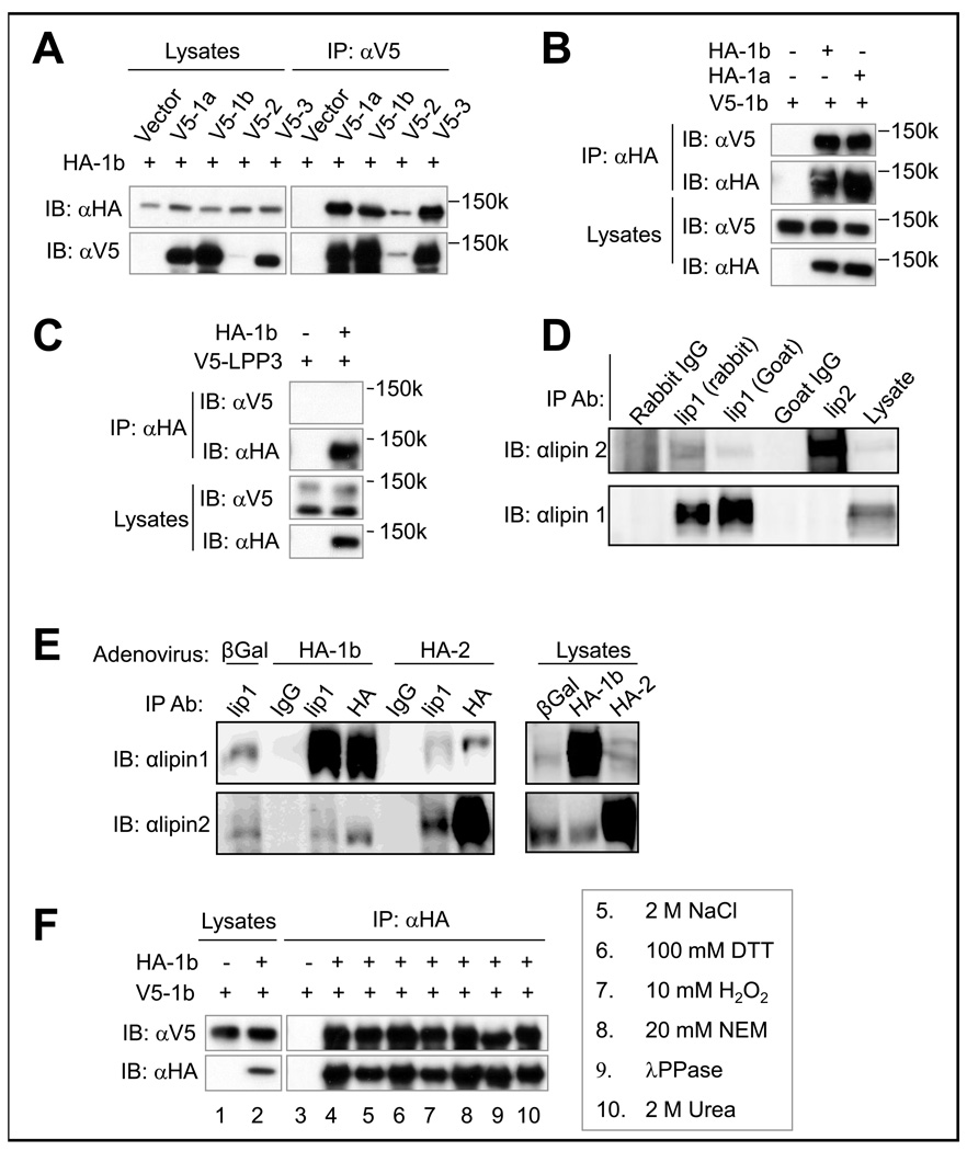 Lipin family members (lipin 1, 2 and 3) are bi-functional proteins that dephosphorylate PA (phosphatidic acid) to produce DAG (diacylglycerol) and act in the nucleus to regulate gene expression. Although other components of the triacylglycerol synthesis pathway can form oligomeric complexes, it is unknown whether lipin proteins also exist as oligomers. In the present study, using various approaches, we revealed that lipin 1 formed stable homo-oligomers with itself and hetero-oligomers with lipin 2/3. Both the N- and C-terminal regions of lipin 1 mediate its oligomerization in a head-to-head/tail-to-tail manner. We also show that lipin 1 subcellular localization can be influenced through oligomerization, and the individual lipin 1 monomers in the oligomer function independently in catalysing dephosphorylation of PA. The present study provides evidence that lipin proteins function as oligomeric complexes and that the three mammalian lipin isoforms can form combinatorial units.