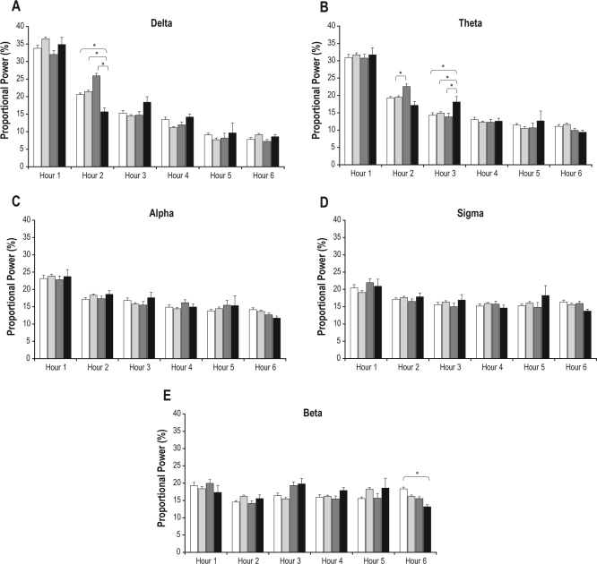Conclusions: Both conventional scoring and EEG spectral analysis indicated only minor disruptions to sleep quality in children with SDB when assessed across the night, in any specific hour of the night, or in any specific sleep stage. These results suggest that reduced daytime functioning previously reported in children with SDB may not be due to sleep disruption. We speculate that in children, in contrast to adults, a stronger sleep drive may preserve sleep quality even in severe SDB.